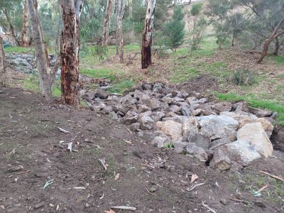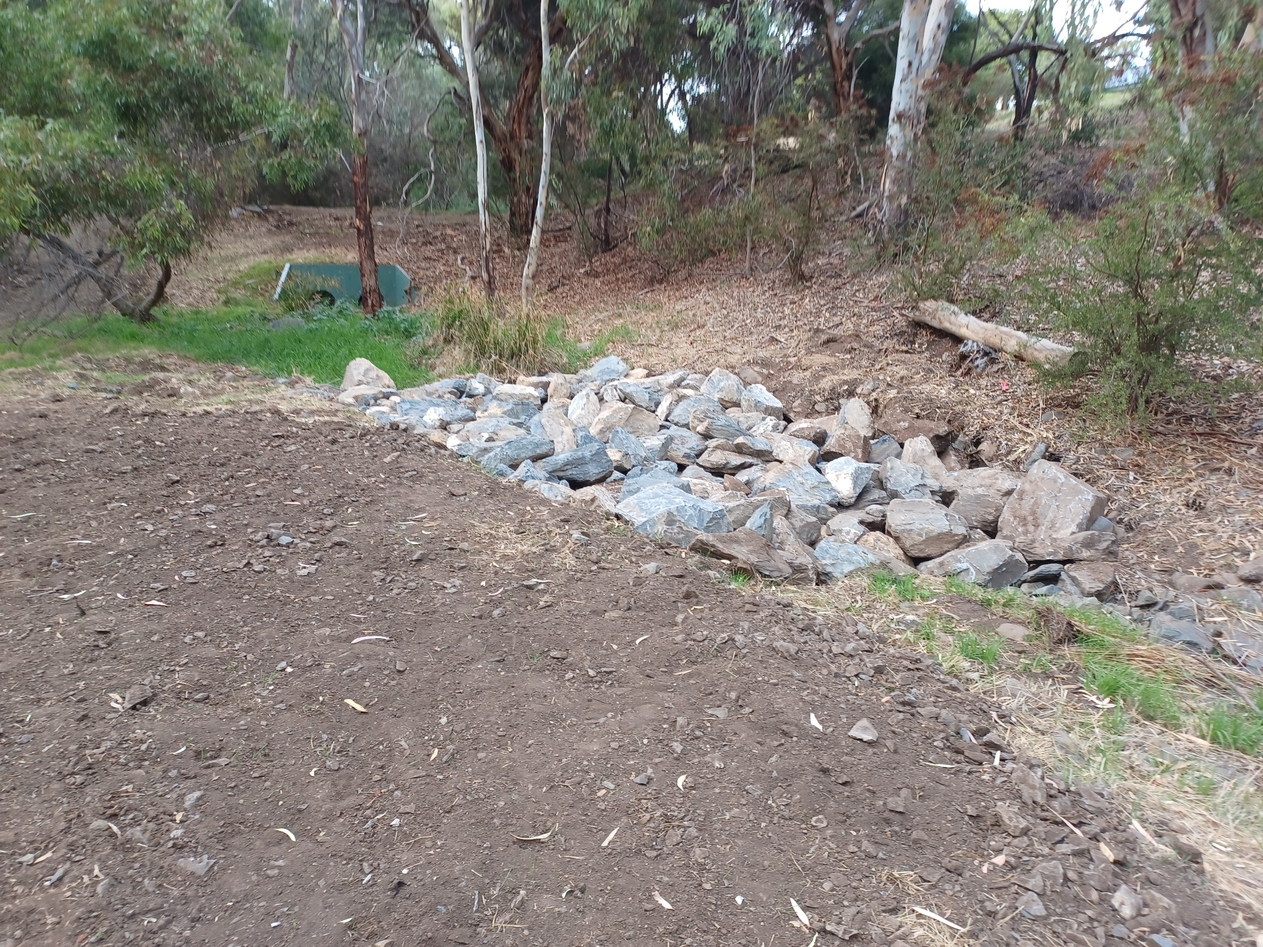 Tree and vegetation removal was kept to a minimum, with machinery restricted to existing trails to limit environmental impact. Only minor trimming of branches was required, along with the removal of two tree saplings to facilitate creek realignment.
