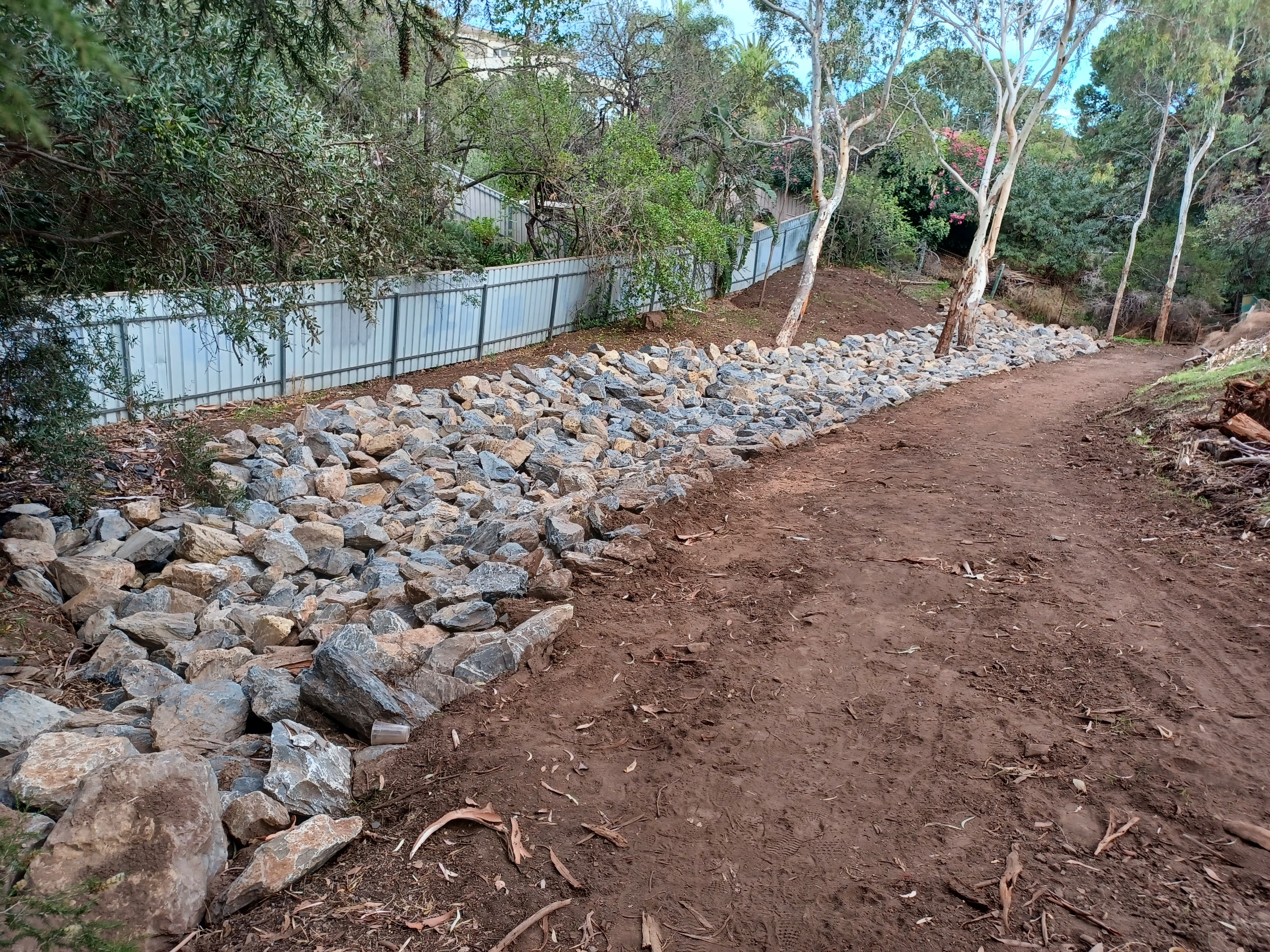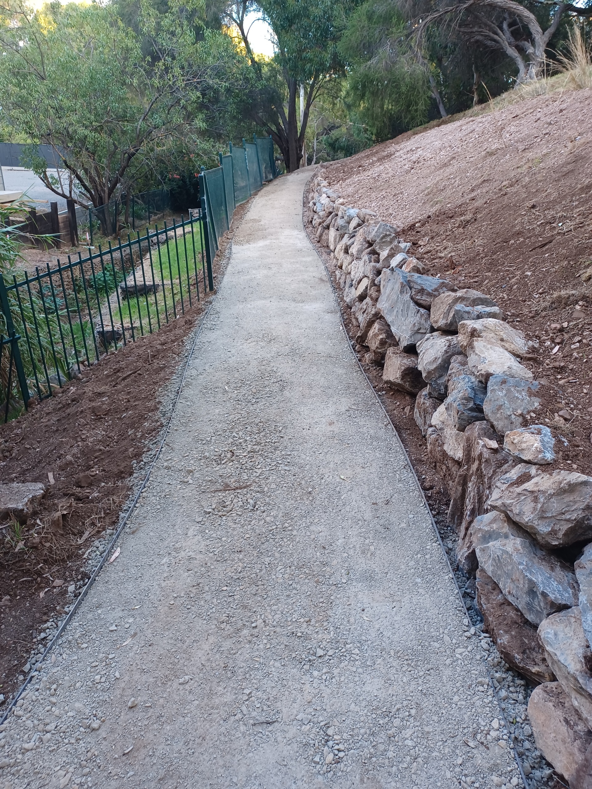 Minor path upgrades included constructing cement-treated, compacted-rubble paths at three previously unsealed access points along Gilbertson Road. A path behind the protective gabion wall along the creek was also regraded and finished with cement-treated rubble to create a flatter, more even surface.