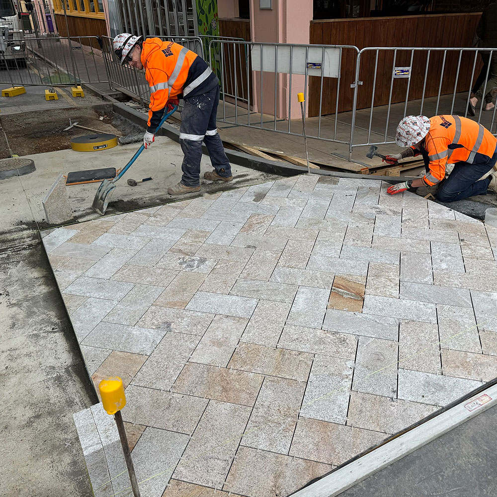 Paving across the Milton Street junction has been laid to create the first continuous footpath in the Coast and Transition zones of Jetty Road, Glenelg, which is west of Gordon / Partridge streets intersection.